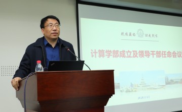 校党委副书记、副校长安实代表学校党委发表了讲话。他指出,学校党委对计算学部党政领导班子配备工作高度重视,从学校和学部发展建设、特别是“双一流”建设大局出发,根据工作需要和学部领导班子建设的实际,经过通盘考虑、反复酝酿、慎重研究决定。希望计算学部党政领导班子成员在新的岗位上,以更高的政治标准要求自己,加强政治理论学习,坚决贯彻落实学校党委对计算学部的要求,进一步严格要求自己,不断提高领导能力,紧密联系师生,党政密切配合,扎实推进学部各项工作,切实履行好岗位职责。他强调,计算机学科历史悠久,具有优良传统,是我国最早的计算机学科之一,2017年计算机科学与技术学科入选了“双一流”建设学科名单。站在2020年建校百年历史节点上,面对新时代新使命新要求,计算学部要进一步凝聚共识、凝聚人心、凝聚智慧、凝聚力量,抢抓机遇、主动作为,坚持学部办学传统和特色,团结带领学部全体教职员工以战略眼光和全球视野在学校“双一流”建设大格局中谋划推动学部发展,把改革创新作为未来发展的根本动力,切实将外部机遇转化为加快发展的内在动力,进一步做大做强、提升综合竞争力。