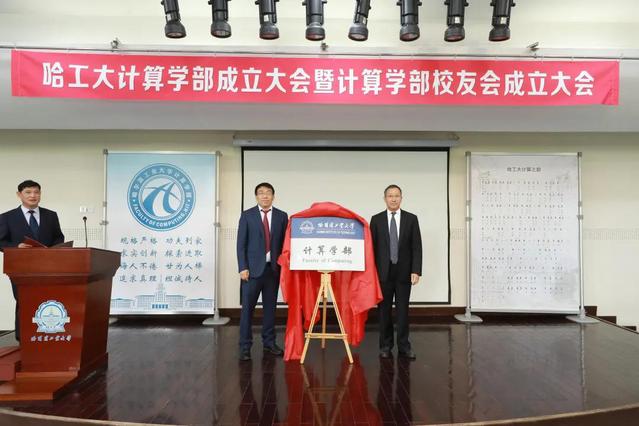 哈尔滨工业大学校长周玉院士和计算学部主任刘挺共同为计算学部揭牌