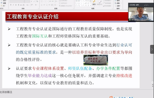 邬向前副主任做了《面向工程教育认证的人工智能专业建设》报告,介绍了工程认证的基本情况,认证标准,认证要求,认证与评估的区别。结合学院正在准备的专业认证,提出了人工智能专业建设要以学生为中心,以学生学习成效驱动为目标,做好教学过程资料积累,形成制度化、规范化管理。专业认证,是一流专业建设的必要条件。