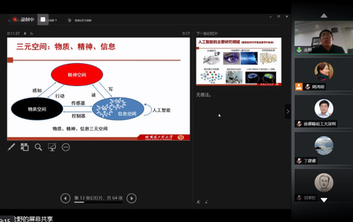计算学部主任刘挺教授首先讲话并引导性开场作了题为《关于人工智能人才培养的一点儿思考》的报告,分析了国内人工智能发展形势,哈工大人工智能人才培养基础和历史,分享了人工智能概念,对比了信息时代和智能时代,明晰了计算机专业和人工智能专业界限,阐述了提出的三元空间:物质、精神、信息的关系,以及计算机和人工智能对信息空间的作用。介绍了智能时代的学科分布,人工智能主要研究领域,学部目前的人工智能研究方向。提出哈工大对人工智能人才培养应该有自己独到的思考。