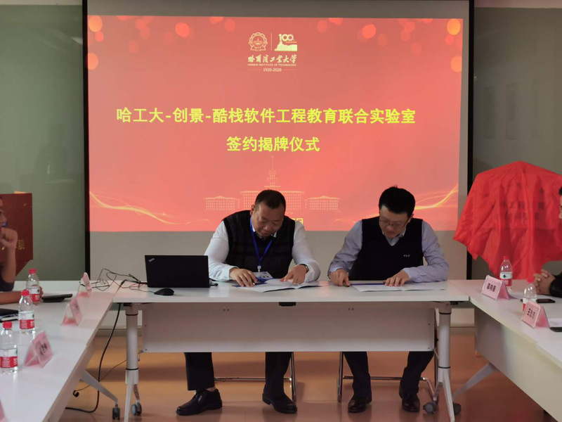 在建校百年计算学部校友返校期间,哈工大-创景-酷栈软件工程教育联合实验室于10月27日正式揭牌。计算学部副主任邬向前教授、软件学院副院长王忠杰教授、计算学部大类教学委员会主任战德臣教授等计算学部教师与上海创景信息科技有限公司总工程师徐曙清校友、上海酷栈科技有限公司董事长孙逸浪校友共同出席了签约和揭牌仪式。软件学院院长助理陈鄞副教授主持仪式。
