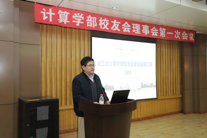 计算学部校友会秘书长王宏志作了计算学部校友会建设工作报告。他从计算学部校友会缘起、筹建过程、组织结构的建立,校友会的发展等方面向理事会成员做了详细的阐述。