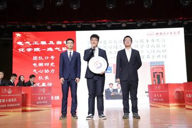 第一个环节是凤采展示。各参赛队伍积极展现其自身特色,依次走上舞台,铿锵有力的喊出他们的口号,高举着代表其学院特色的醒目标语牌,彰显着他们的朝气和必胜的信念。