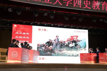决赛在雄壮的国歌声中拉开帷幕。接下来各参赛队伍在“风采展示”、“主题讲史”、“题词猜史”、“看图猜史”、“抢答”和“逆风翻盘”等环节中激烈角逐。