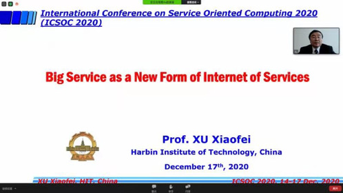 20201217日下午,哈工大副校长、哈工大(威海)校长、哈工大软件学院院长徐晓飞教授受邀在International Conference on Service-Oriented Computing (ICSOC 2020)上做大会主题报告,题目为“Big Service as a New Form of Internet of Services”。