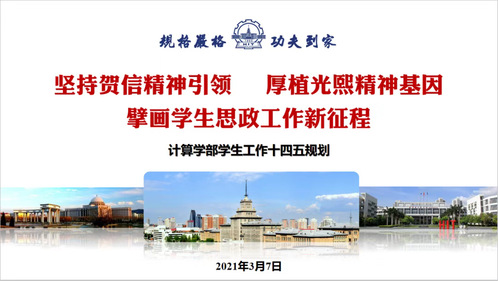 为深入贯彻习近平总书记致哈尔滨工业大学建校100周年贺信精神,全面落实《教育部等八部门关于加快构建高校思想政治工作体系的意见》精神,坚决贯彻学校第十三次党代会精神,落实立德树人根本任务,传承“光熙精神”和哈工大计算机文化,探索一校三区计算学科群学生工作“共建、共享、互通、互补”新机制,践行“兴院、强部、荣校、报国”使命,为培养又红又专、全面发展的计算技术专业人才和“计算+X”复合型人才再添新动能,开云官方版网站登录入口于2021年3月7日召开一校三区学生工作交流研讨会。