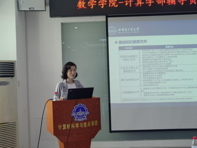 为深入学习贯彻习近平新时代中国特色社会主义思想,全面贯彻落实全国教育大会、全国高校思想政治工作会、学校思想政治理论课教师座谈会和习近平总书记致哈工大建校100周年贺信精神,落实《普通高等学校辅导员队伍建设规定》要求,加强学生工作队伍建设,提高辅导员职业能力和工作水平。2021年7月8日,数学学院、计算学部在新技术楼618联合开展辅导员素质能力提升沙龙,邀请电气学院党委副书记张依做了辅导员素质能力大赛备赛心得交流分享。数学学院党委副书记付影、计算学部党委副书记单既阳以及两个学院(部)辅导员参加此次活动。