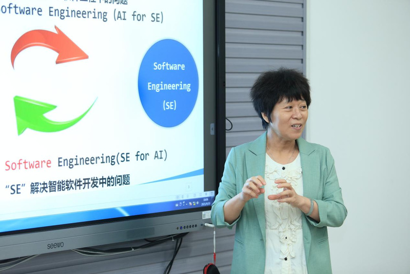 会上,苏老师为同学们细致的介绍了她目前所研究的领域智能软件工程的具体情况:为了解决传统软件的漏洞查找及安全保障的人工成本高的问题,以人工智能和软件工程为主题的智能软件工程应运而生。目前智能软件工程力求实现缺陷报告自动分派、自动定位源代码、漏洞严重性预测、代码自动生成(补全与推荐)、代码理解、代码自动化修复、代码自动生成摘要等强大功能。目前的程序代码自动判分系统就是智能软件工程的初步应用。