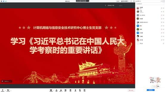 习近平总书记考察中国人民大学时的重要讲话在计算学部青年学子间引发重大反响,各学生党支部积极组织学习,学生党员共话学习心得感悟。