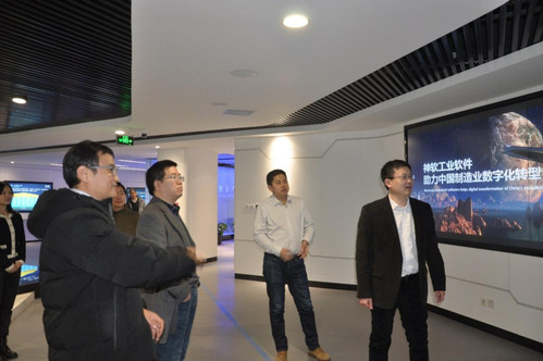 交流会之前,王忠杰教授一行参观了神软公司展厅,神软专家闫红军、赵明智向大家详细介绍神软公司发展历程及产品研发等基本情况。