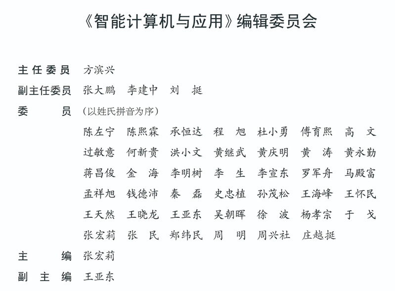 45位国内外著名计算机专家和知名学者组成《智能计算机与应用》编辑委员会,对本刊进行指导、水平把关和技术支持。《智能计算机与应用》期刊现已被中国知网、万方、超星、维普等多家重要中文数据库收录。