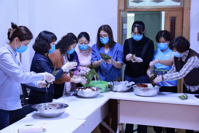 文艺演出后,粽子 DIY 活动备受期待。现场粽叶、糯米、红枣等材料齐全,粽香四溢。在退休老师们指导下,教职工们动手尝试,折叠粽叶、填装糯米、包裹捆扎,边学边交流技巧。很快,一个个饱含心意的粽子成型,大家脸上洋溢着成就感与幸福感,纷纷表示要将这份甜蜜带回家与家人分享。